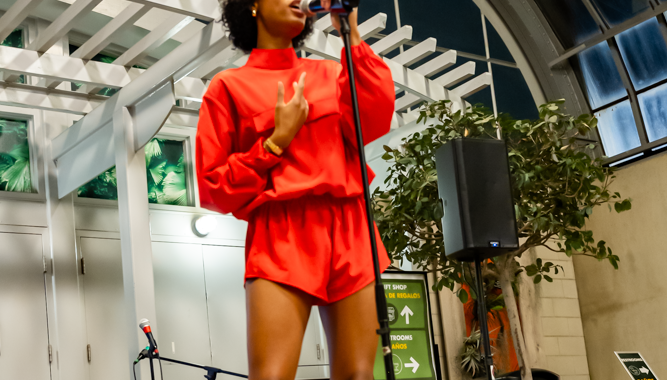 On March 18, 2026, Stomping Grounds Literary Arts Initiative hosted Open Stage at the beautiful Garfield Park Conservatory, featuring the talented R&B artist Paige Ellis. It was a truly special evening, with members of the Garfield Park Conservatory community coming together for an intimate night of storytelling, music, and connection.